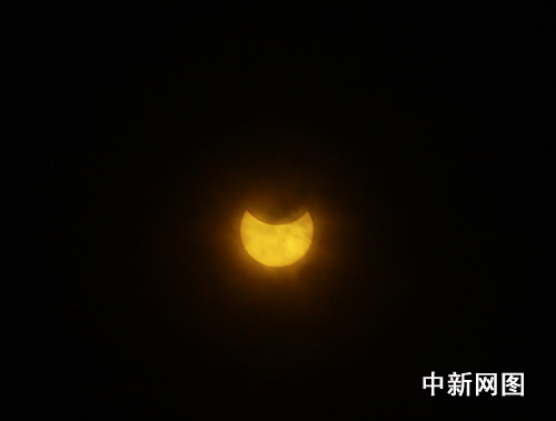 圖:“大日食”如約光臨重慶 當(dāng)?shù)厥忻衤N首觀看(2)