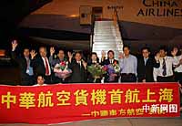 兩岸首班專案貨運包機——臺灣“中華航空公司”CI六九○一航班于二00六年七月二十日凌晨零時三十三分飛抵上海浦東機場。該首航貨機于十九日晚間在臺灣桃園機場起飛,歷經(jīng)二個半小時航程,抵達上海,機型采用波音七四七—四○○型全貨機。該專案貨機的航線,與此前兩岸春節(jié)客運包機的航線相一致,由于仍需繞道飛經(jīng)香港航管區(qū)上空,因此尚非真正意義上的兩岸直航。據(jù)了解,本次專案貨運包機搭載的是在滬辦廠的臺商為擴大產(chǎn)能而托運的機械設備和相關器材。業(yè)內(nèi)人士分析,兩岸貨運包機的實現(xiàn),一定程度上能夠滿足臺商特別是高科技廠商在大陸投資的實際需求,有利于提升這些企業(yè)在國際市場上的競爭力。與此同時,這也是兩岸空中通航在原有基礎上又邁出的新一步。
