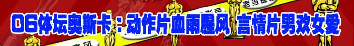 最佳紀(jì)錄片:退役明星《王的男人》 最佳影片:退役明星《王的男人》 終身成就獎:退役明星 頒獎詞:當(dāng)2006年的秒針走向最后一刻時,在我們記憶里揮不去的是那些王者的背影。“車王”舒馬赫將風(fēng)中的紅色身影收起,“球王”齊達內(nèi)停下曼妙的舞步,網(wǎng)球之王阿加西最后一次把親吻獻給觀眾,“大腳王子”索普再也劈不開綠池的碧波……再見了,我們的王者、我們的神,我們會懷念那些你們帶來的難忘歲月,深鎖住你們鑄就的傳奇故事。就算是卡特里娜颶風(fēng)也帶不走腦中的思緒,就算是印度洋海嘯也沖不掉心中的悸動。 在新年的鐘聲敲響時,讓我們帶著崇敬的心情向那些曾給我們無數(shù)感動的人道別:再見了,王者! |