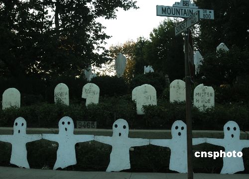 美國(guó)南加州火災(zāi)未滅,洛杉磯十月底迎接萬(wàn)圣鬼節(jié)的裝飾在街頭隨處可見(jiàn),但民眾的節(jié)日情緒明顯低落。中新社發(fā) 賈國(guó)榮 攝