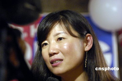 當(dāng)?shù)貢r(shí)間十一月六日是美國(guó)加州選舉日,來(lái)自中國(guó)武漢的生物科技專家周惠君積極參選,成為美國(guó)西岸大陸留美學(xué)生第一個(gè)競(jìng)選美國(guó)高級(jí)公職的者,也創(chuàng)下全職高科技人才從政的范例。圖為周惠君在接受當(dāng)?shù)仉娨暸_(tái)的采訪。中新社發(fā) 陳鋼 攝