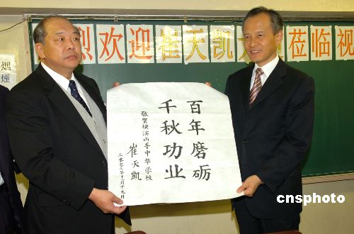 11月19日上午,上任伊始的中國(guó)駐日大使崔天凱專程來(lái)到日本橫濱山手中華學(xué)校,看望這座具有百年歷史的僑校師生,中國(guó)駐日使館公使孔鉉佑、中國(guó)駐日使館總領(lǐng)事于淑媛陪同。崔天凱大使一行受到該校師生的熱烈歡迎。中新社發(fā) 滕劍峰 攝