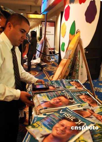 世界最大的消費(fèi)電子產(chǎn)品展一月七日在美國拉斯維加斯開幕前,以雅虎總裁楊致遠(yuǎn)做封面的《視覺》雜志在新聞中心十分醒目。中新社發(fā) 賈國榮 攝