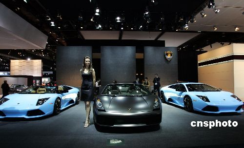 當?shù)貢r間1月14日,蘭博基尼在底特律北美車展上彰顯個性,高雅醒目的色彩和奢華的內(nèi)廂配置,吸引了眾多媒體關注。中新社發(fā) 潘索菲 攝