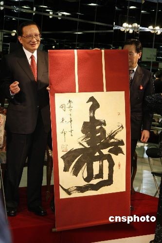 唐家璇走訪日本松山芭蕾舞團(tuán)獲贈(zèng)“壽”字