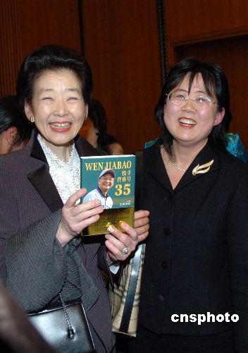 日僑報社長向首相夫人贈送《35號投手溫家寶》