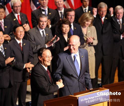 6月17日,第四次中美戰(zhàn)略經(jīng)濟(jì)對(duì)話在美國(guó)馬里蘭州首府安納波利斯的海軍學(xué)院拉開帷幕。中國(guó)國(guó)務(wù)院副總理王岐山和美國(guó)財(cái)長(zhǎng)保爾森共同主持本次對(duì)話。中新社發(fā) 譚宏偉 攝