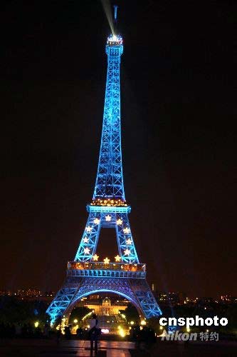 法國將于今年7月1日起擔(dān)任歐盟輪值主席國。6月30日晚,法國的標(biāo)志性建筑——巴黎埃菲爾鐵塔開始披上了“歐盟裝”,其藍(lán)底黃星的色彩象征歐盟的旗幟。中新社發(fā) 吳衛(wèi)中 攝