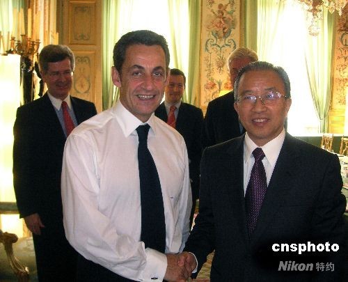 法國總統(tǒng)薩科齊七日會見了正在巴黎訪問的中國國務(wù)委員戴秉國。薩科齊表示,愿以即將召開的第七屆亞歐首腦會議和第十一次歐中領(lǐng)導人會晤為契機,將法中和歐中全面戰(zhàn)略伙伴關(guān)系推向更高水平。中新社發(fā) 法芬 攝