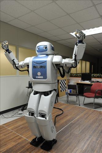 韓國科學(xué)技術(shù)研究院10月13日表示,機(jī)器人研究小組劉凡材博士開發(fā)的機(jī)器人“MARU”,可同時(shí)轉(zhuǎn)動上下肢,并可以像人一樣靈活行動,此外,還能隨著音樂節(jié)奏跳舞。人們還可以通過遠(yuǎn)程控制,讓它作出多種人體動作。