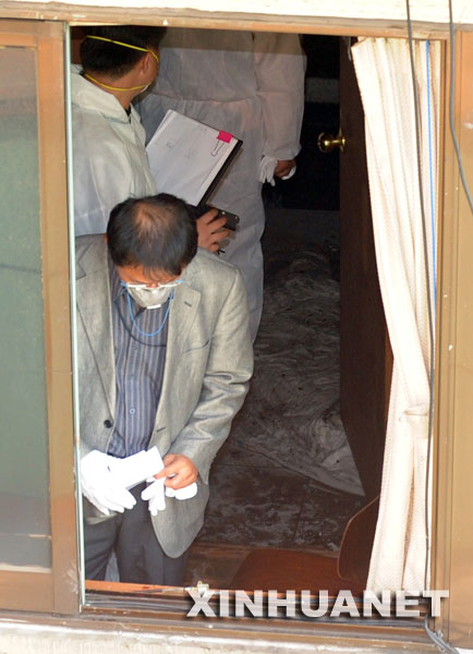10月20日,韓國(guó)警察在首爾市江南區(qū)論峴洞一家旅館內(nèi)的兇案現(xiàn)場(chǎng)調(diào)查。新華社/紐西斯通訊社