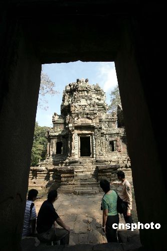 十二月中旬,游客在柬埔寨吳哥窟的周薩神廟游覽古跡。在聯(lián)合國科教文組織的協(xié)調(diào)下,中國政府派出吳哥保護工作隊,目前正擔負吳哥窟古跡群中的周薩神廟維修工程。中新社發(fā) 洪少葵 攝
