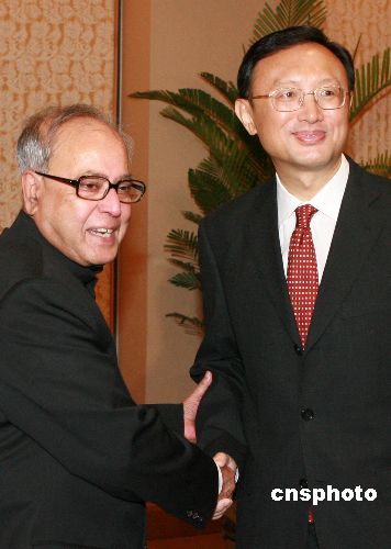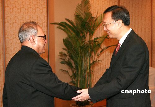 十月二十五日,中國外交部部長楊潔篪在哈爾濱會見前來參加中俄印三國外長會晤的印度外交部部長慕克吉。中新社發(fā) 廖文靜 攝