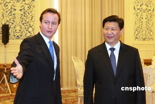 十二月十九日,中共中央政治局常委、書記處書記習(xí)近平在北京人民大會(huì)堂會(huì)見(jiàn)了由英國(guó)保守黨領(lǐng)袖戴維·卡梅倫率領(lǐng)的英國(guó)保守黨代表團(tuán)。中新社發(fā) 廖文靜 攝