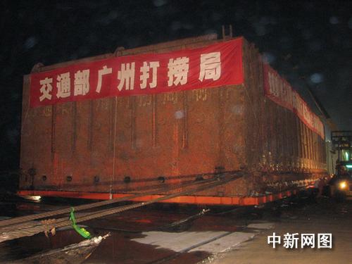今天凌晨1時(shí)18分,“南海一號(hào)“沉井完全登陸,實(shí)現(xiàn)整體打撈的成功。明天,“南海一號(hào)”將入住“水晶宮”。(圖文/索有為)