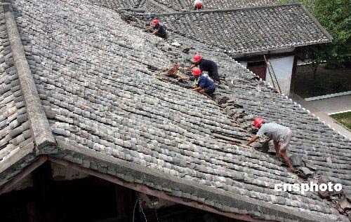 圖為施工隊伍正抓緊修復(fù)明月小學(xué)的部分教室。2008年5年12日四川汶川大地震波及華鎣市,震感強(qiáng)烈,致使該市學(xué)校大面積不同程度受災(zāi),據(jù)統(tǒng)計,有11所學(xué)校受災(zāi),受損面積8200平方米,損失680萬余元,致使近1500名學(xué)生不能正常行課。災(zāi)情發(fā)生后,四川華鎣市委市政府立即組織市教育局和各學(xué)校迅速行動,啟動了應(yīng)急預(yù)案,各級領(lǐng)導(dǎo)在第一時間分赴受災(zāi)學(xué)校指揮指導(dǎo)抗災(zāi)救災(zāi)工作,確保了師生生命財產(chǎn)安全,無一例地震傷亡事故發(fā)生;同時,他們在組織專家鑒定后,立即籌集資金,組織施工隊伍修復(fù)損壞不大的教室,使學(xué)生盡快復(fù)課。
