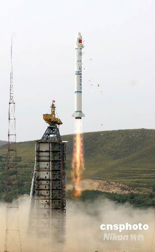 北京時(shí)間9月6日上午11時(shí)25分,中國(guó)“環(huán)境與災(zāi)害監(jiān)測(cè)預(yù)報(bào)小衛(wèi)星”(簡(jiǎn)稱“環(huán)境減災(zāi)”)A、B衛(wèi)星以一箭雙星方式,在太原衛(wèi)星發(fā)射中心由“長(zhǎng)征二號(hào)丙”運(yùn)載火箭成功發(fā)射升空。中新社發(fā) 孫自法 攝