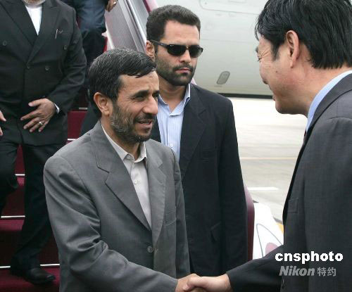 9月6日,伊朗總統(tǒng)艾哈邁迪-內(nèi)賈德飛抵首都國(guó)際機(jī)場(chǎng),前來(lái)出席北京殘奧會(huì)開(kāi)幕式及相關(guān)活動(dòng)。中新社發(fā) 富田 攝