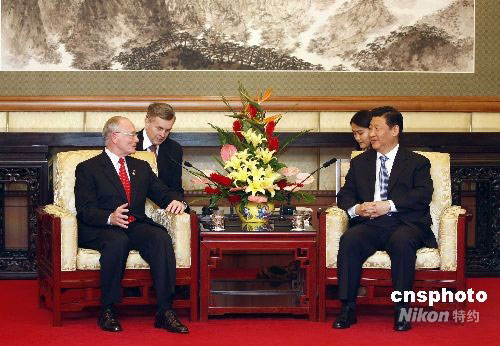 9月8日,中國(guó)國(guó)家副主席習(xí)近平在北京釣魚臺(tái)國(guó)賓館會(huì)見美國(guó)退伍軍人事務(wù)部部長(zhǎng)皮克。中新社發(fā) 盛佳鵬 攝