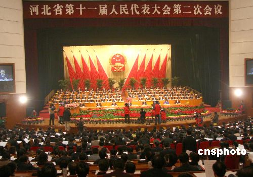 河北省第十一屆人民代表大會(huì)第二次會(huì)議1月8日在石家莊開幕,七百余名人大代表齊聚河北會(huì)堂,聽取和審議省政府工作報(bào)告。報(bào)告中提出該省今年經(jīng)濟(jì)增長9%的目標(biāo)。中新社發(fā) 田張夢 攝