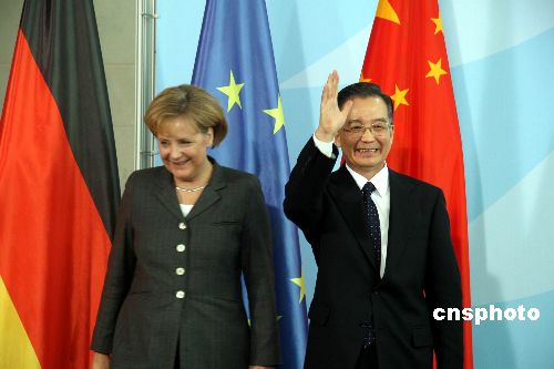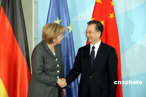 中國國務院總理溫家寶二十九日在柏林和德國總理默克爾進行了會談,中德兩國簽署了共同努力穩(wěn)定世界經濟形勢的聯(lián)合聲明和氣候、交通等合作項目文件。中新社發(fā) 吳衛(wèi)中 攝