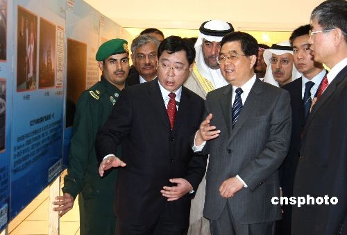 當?shù)貢r間2月11日上午,正在沙特進行國事訪問的中國國家主席胡錦濤,來到利雅得水泥公司,參觀由中材國際承建的水泥生產線項目。中新社發(fā) 齊彬 攝