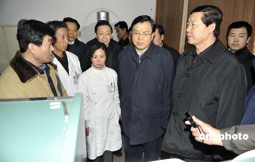 2009年2月22日晚10點,醫(yī)務(wù)人員向國務(wù)院副總理張德江、國家安全監(jiān)管總局局長駱琳、山西省委書記張寶順、省長王君、山西省衛(wèi)生廳廳長高國順等匯報受傷人員情況。當日凌晨,山西西山煤電公司屯蘭礦發(fā)生一起特大瓦斯爆炸事故,造成74人死亡,114名傷員在醫(yī)院接受觀察、治療。張德江副總理當晚趕到屯蘭煤礦事故現(xiàn)場,看望并慰問遇難者家屬和受傷人員,并宣布成立國務(wù)院山西焦煤集團屯蘭煤礦瓦斯爆炸事故調(diào)查組。中新社發(fā) 安全 攝