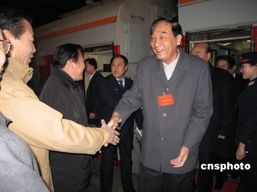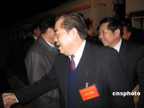 3月2日6:02分,來(lái)自河南的全國(guó)人大代表抵達(dá)北京,成為首批抵京參加十一屆全國(guó)人大二次會(huì)議的京外代表。圖為在站臺(tái)受到熱烈歡迎的河南省全國(guó)人大代表。中新社發(fā) 石雨 攝