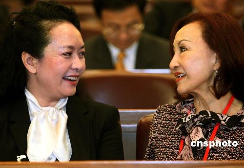 3月7日下午,全國政協十一屆二次會議舉行第二次全體大會,出席會議的彭麗媛與鄭明明輕松交談。中新社發(fā) 宋吉河 攝