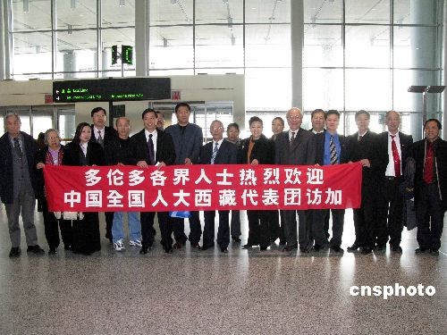 當(dāng)?shù)貢r間三月二十日,結(jié)束在美國的訪問后,由五位在西藏成長和生活的全國人大代表組成的中國全國人大西藏代表團(tuán)赴加拿大繼續(xù)訪問。在加拿大機(jī)場受到當(dāng)?shù)馗鹘缛耸康臒崃覛g迎。二十日抵達(dá)多倫多數(shù)小時后,代表團(tuán)舉行記者會,接受二十多家媒體四十多名記者的集體采訪,詳細(xì)回答記者的提問。中新社發(fā) 孫宇挺 攝