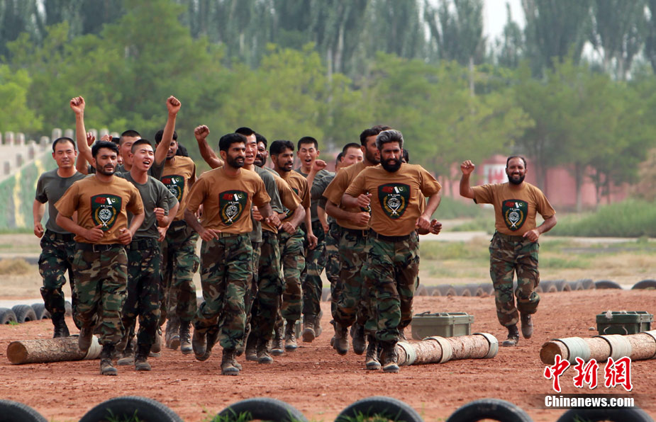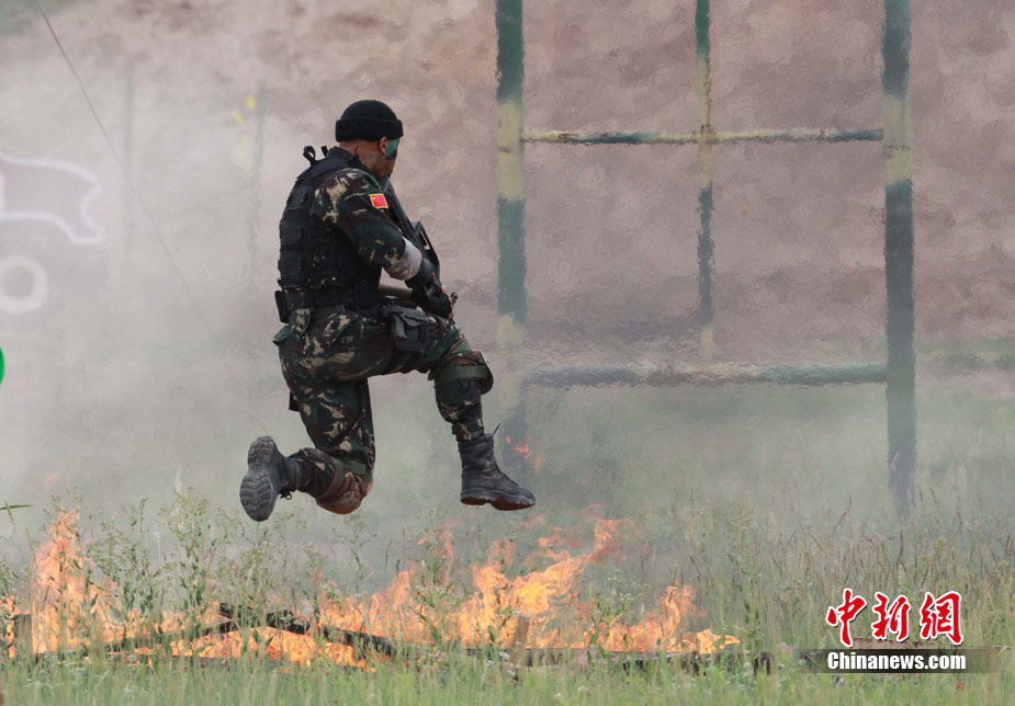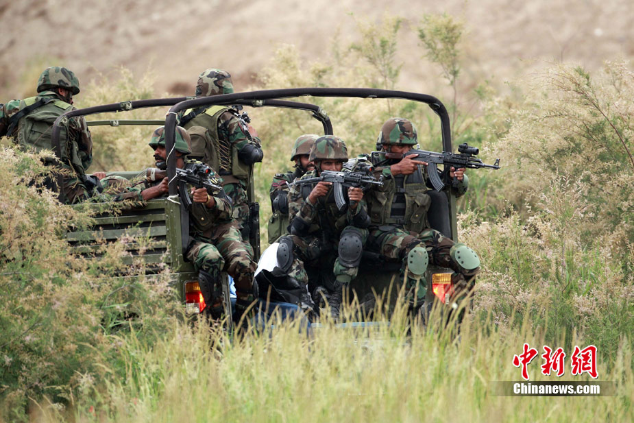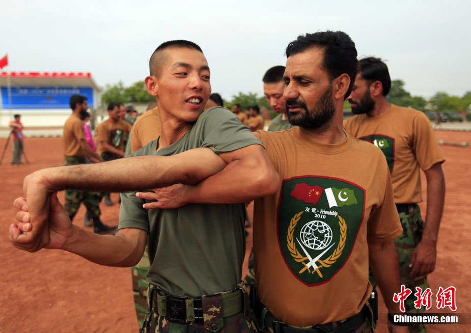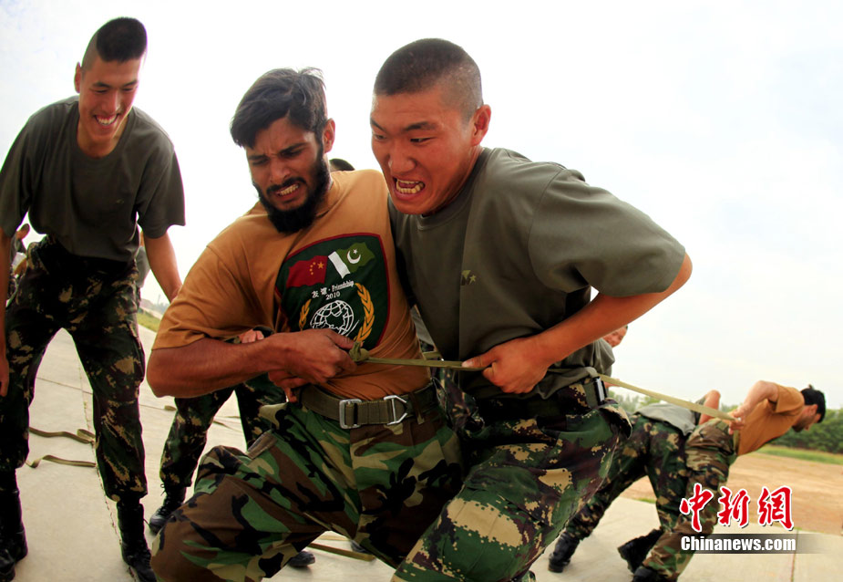 7月4日,“友誼—2010”的中國巴基斯坦反恐聯(lián)合訓(xùn)練在中國寧夏青銅峽地區(qū)展開,此次訓(xùn)練主要以邊境地區(qū)山地聯(lián)合反恐作戰(zhàn)為課題,分為展示交流、混編同訓(xùn)、綜合演練三個階段。圖為反人質(zhì)劫持演練。中新社發(fā) 杜洋 攝
