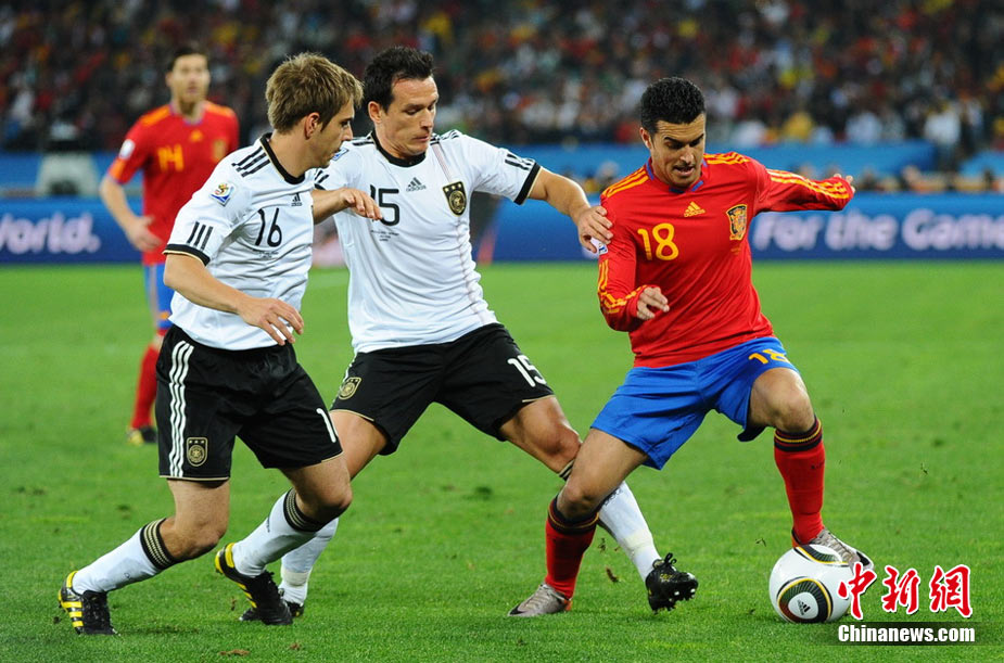 北京時間7月8日凌晨2:30,南非世界杯第二場半決賽在德班球場拉開戰(zhàn)幕,由德國隊迎戰(zhàn)西班牙。憑借普約爾在第73分鐘的頭球破門,西班牙隊1-0力克德國,與荷蘭隊會師決賽。