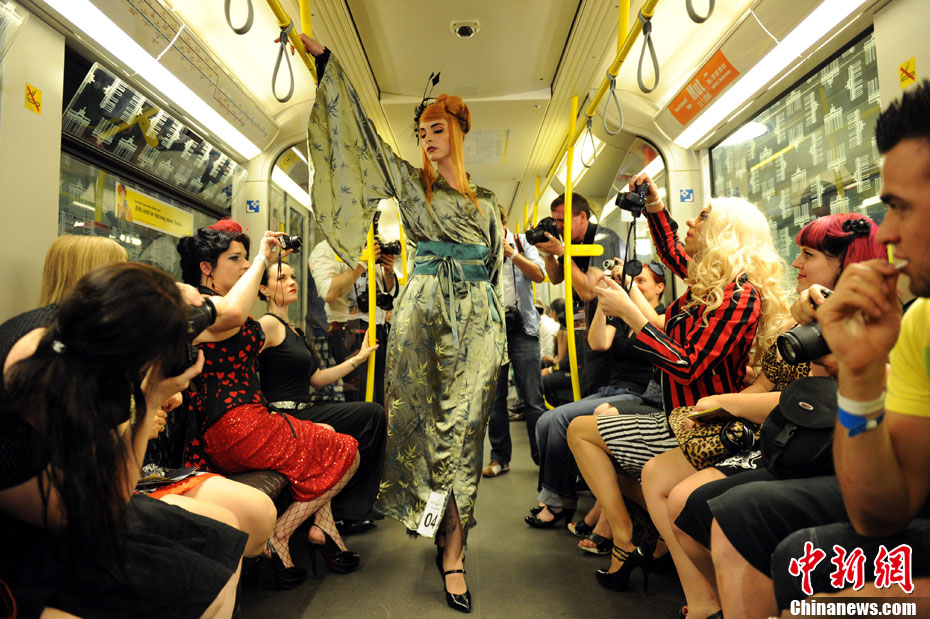 近日,模特穿行在德國(guó)柏林行駛的地鐵上進(jìn)行時(shí)裝表演。這場(chǎng)名為“地鐵上的貓步”的時(shí)裝表演充滿朋克和搖滾元素,已經(jīng)成為每年柏林春夏時(shí)裝周的一部分。
