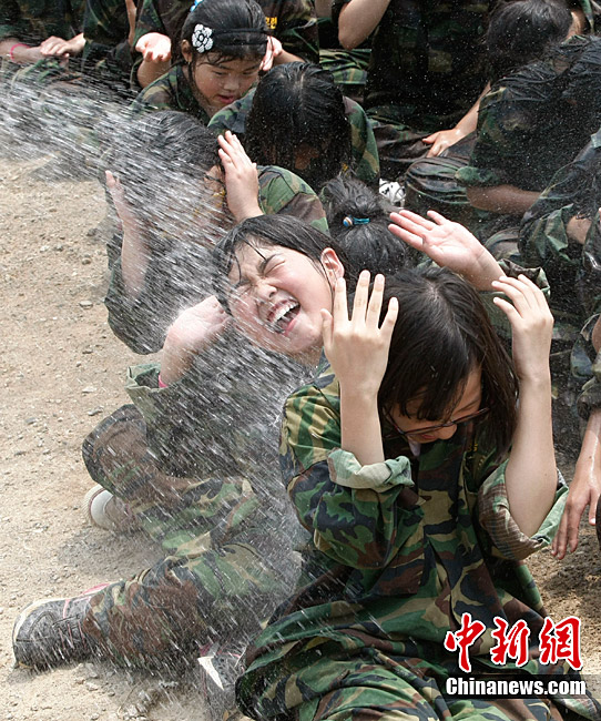當?shù)貢r間7月15日,來自韓國首都首爾的156名小學生參加了在安山市大阜島為期3天的軍訓夏令營。