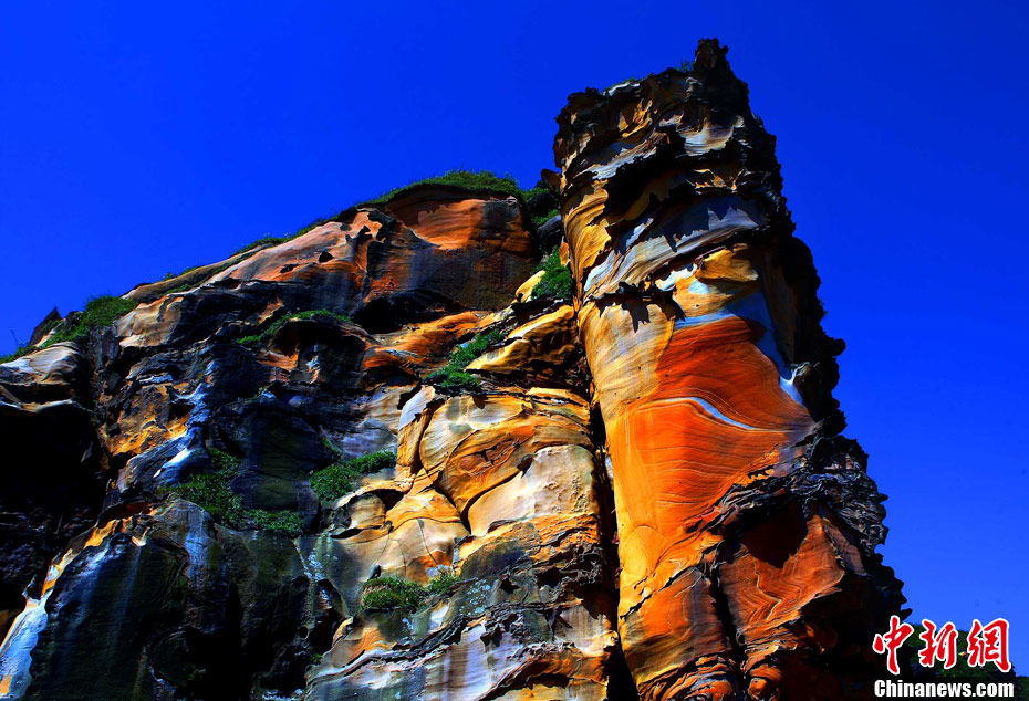 進(jìn)入7月中下旬的臺灣野柳地質(zhì)公園旅游區(qū)游人大增,觀光客游趣濃厚的野柳地質(zhì)公園是一處突出海面的岬角,受海浪侵蝕、巖石風(fēng)化等作用,形成蜂窩巖、菌狀巖、姜狀巖、臘燭臺等各種各樣的奇特景觀。中新社記者 宋吉河 攝