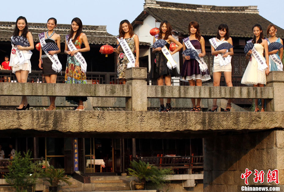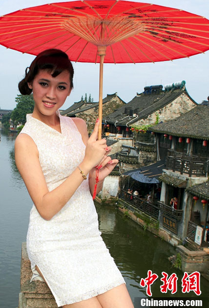 7月20日,正在浙江參加2010年國(guó)際旅游小姐中國(guó)區(qū)總決賽的34位佳麗來(lái)到西塘古鎮(zhèn)拍攝外景。此次賽事采取六輪淘汰賽形式進(jìn)行冠亞季選拔,并以欄目采取真人秀形式立體展示國(guó)旅及合作景區(qū)風(fēng)采。圖為參賽佳麗身著旗袍展示風(fēng)采。中新社發(fā) 錢(qián)興強(qiáng) 攝