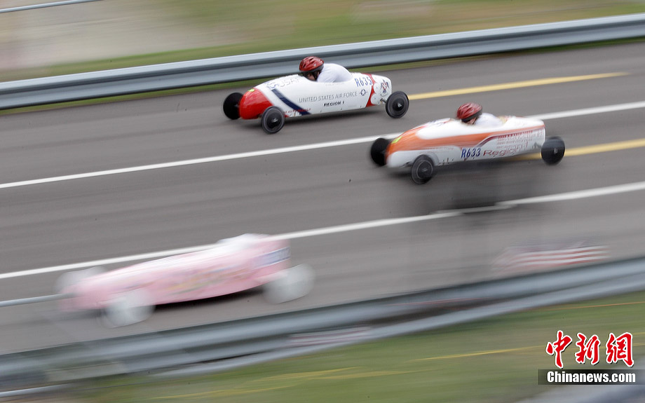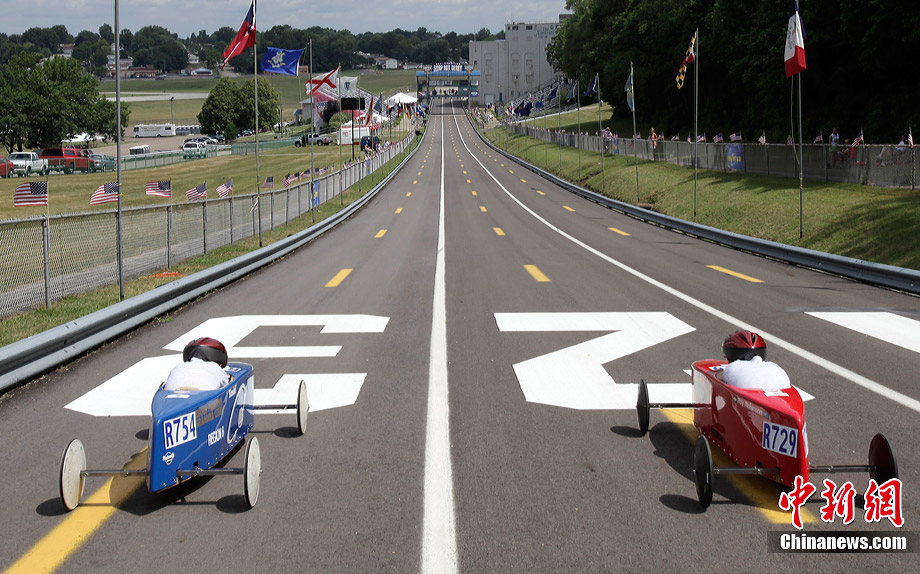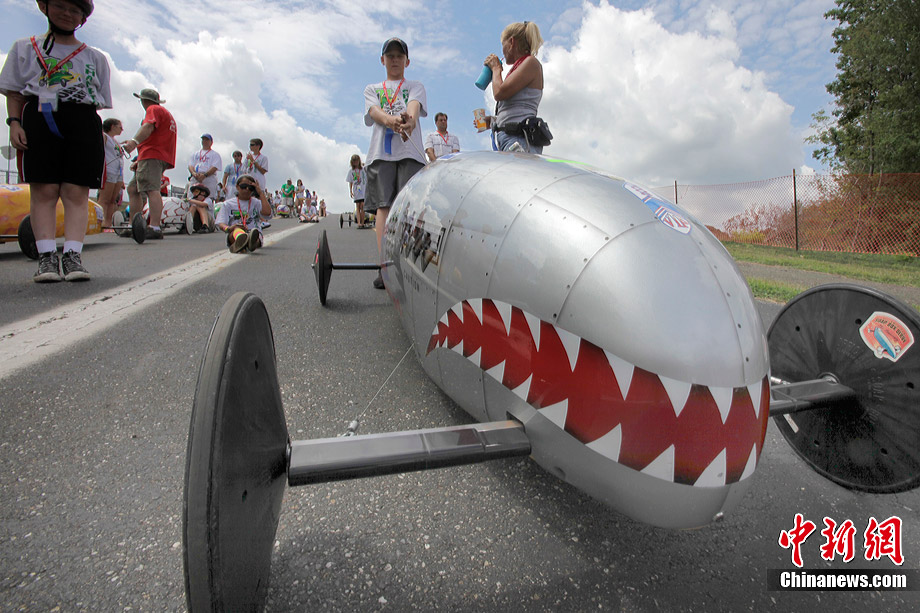 當(dāng)?shù)貢r(shí)間7月21日,美國(guó)俄亥俄州舉行了第73屆全美“肥皂盒”小車大賽。來(lái)自美國(guó)各地以及加拿大、日本、德國(guó)和新西蘭的約500名車手?jǐn)y帶自己的愛車參賽!胺试砗小毙≤嚊]有任何動(dòng)力裝置,其主要設(shè)計(jì)目標(biāo)是減少空氣阻力和摩擦力,以便讓小車的速度達(dá)到最高。