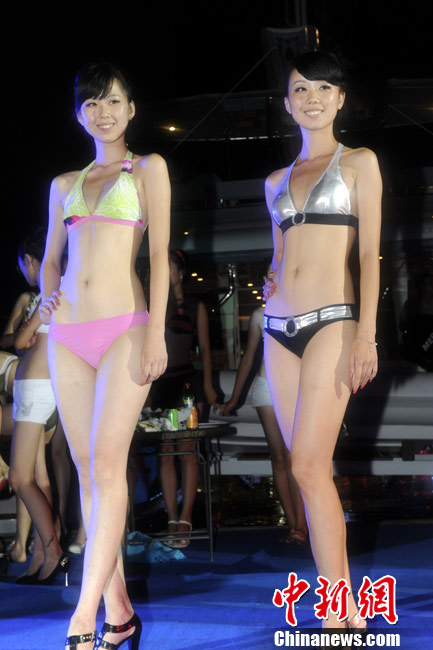 7月25日,2010青島國際海洋節(jié)盛大開幕。當晚,在青島奧帆中心的游艇上舉行了一場活力四射的比基尼派對。中新網記者 田博川 攝