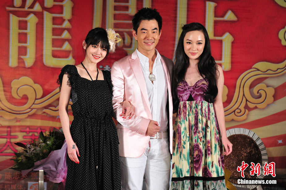 7月30日,古裝愛情喜劇《龍鳳店》在京舉辦官網(wǎng)啟動暨終極海報揭幕發(fā)布會,導(dǎo)演鐘澍佳攜主演任賢齊、大S、霍思燕亮相,臺灣著名音樂人小蟲前來助陣。大S頭戴“刺猬”發(fā)卡可愛亮相,與任賢齊在現(xiàn)場大談對唱《龍鳳店》主題曲的感受,大S笑稱唱歌比小S好聽。后來登臺的霍思燕卻大搶大S風頭,她為任賢齊親手戴上禮物項鏈,還親密擁抱久久對視,兩人在現(xiàn)場大秀親昵立刻成為眾人矚目焦點,讓大S在一旁有點沒事做。中新社記者 李學(xué)仕攝