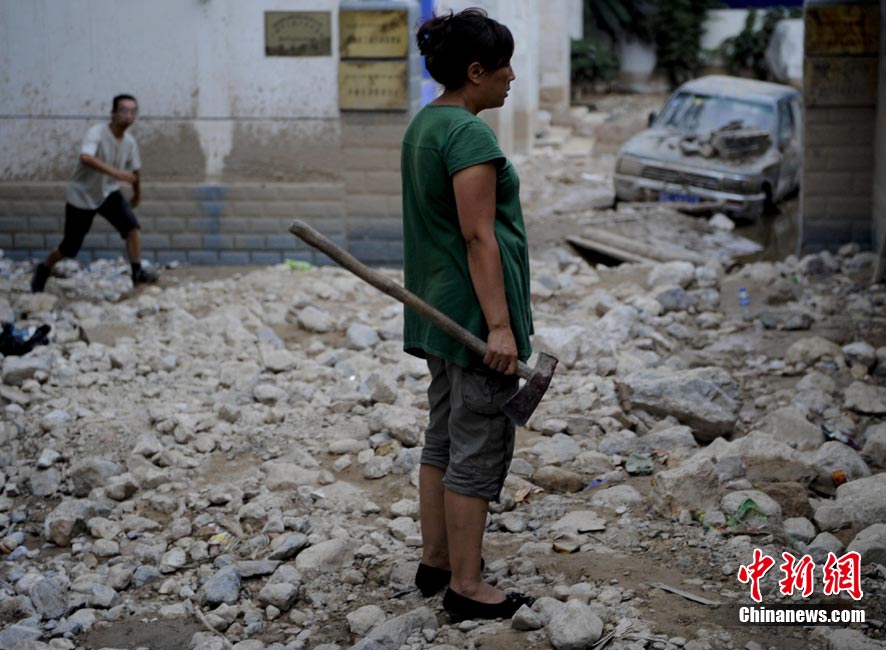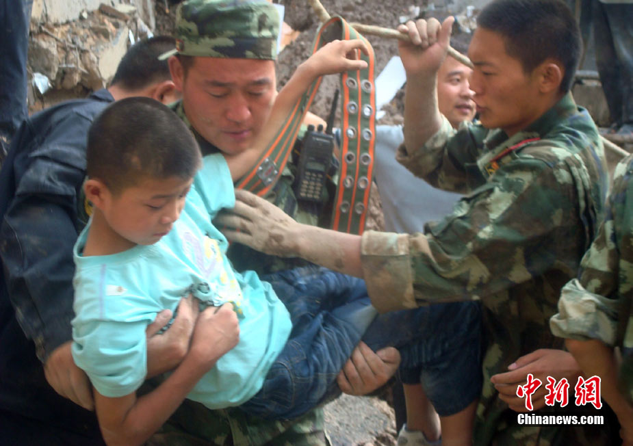 8月9日,甘肅舟曲泥石流災(zāi)區(qū)搜救進(jìn)入第二天。圖為消防官兵正在搜尋失蹤人員。中新社發(fā) 劉忠俊 攝