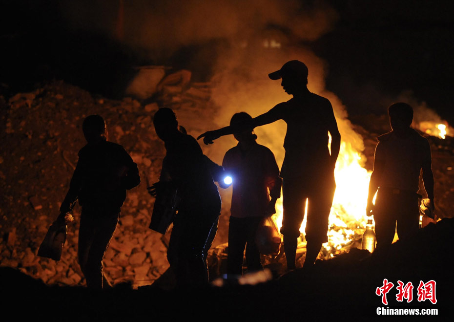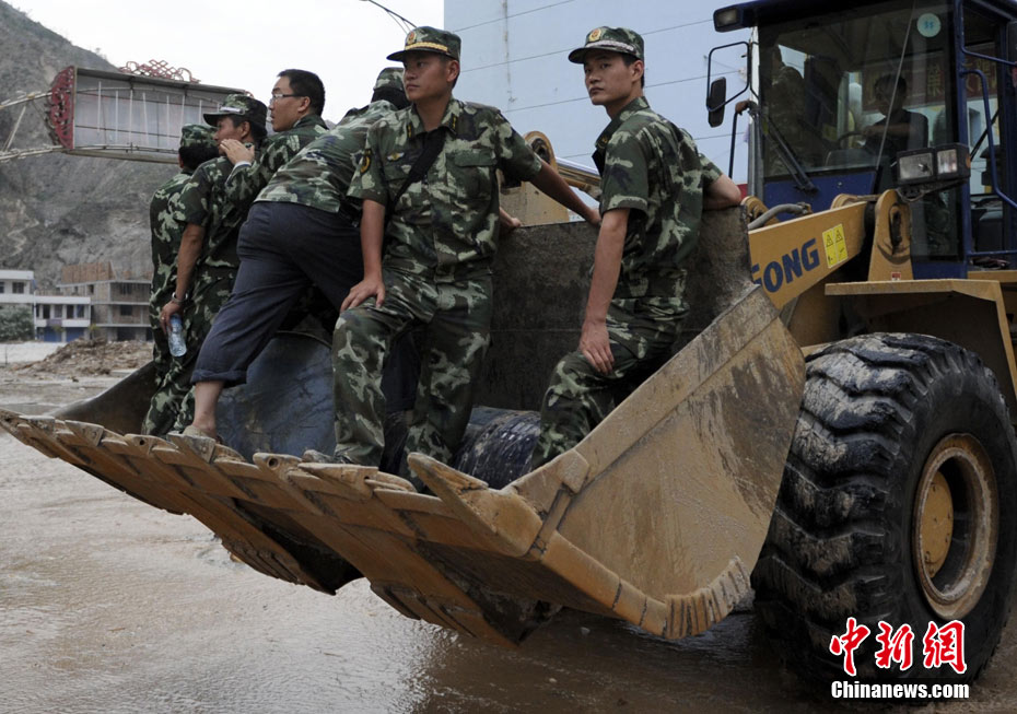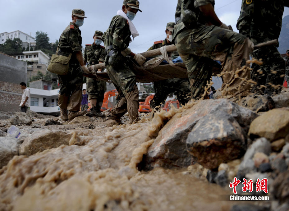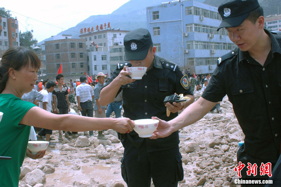 舟曲縣城內(nèi)被泥石流沖毀的建筑。中新網(wǎng)記者 金碩 攝