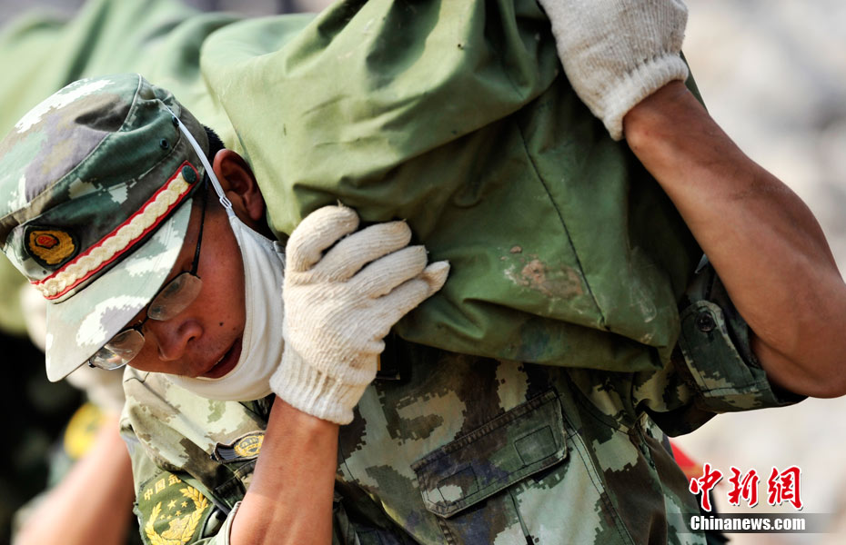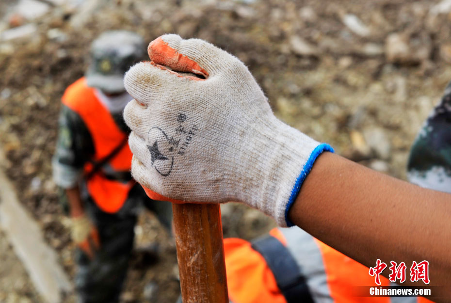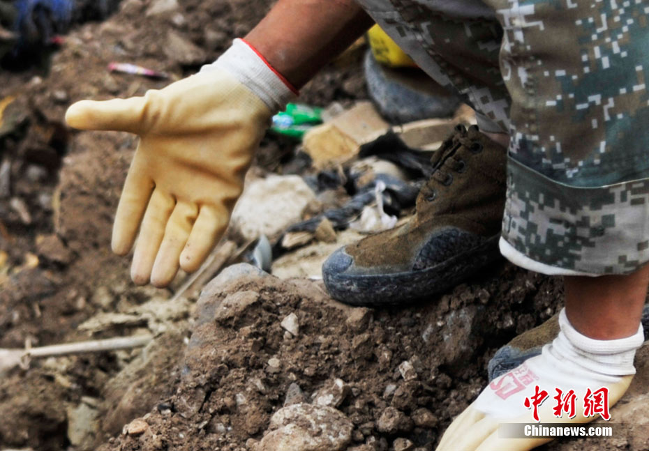 8月10日 舟曲救援進(jìn)入到第三天,解放軍武警官兵們在廢墟中尋找著一切希望。中新網(wǎng)記者 金碩 攝