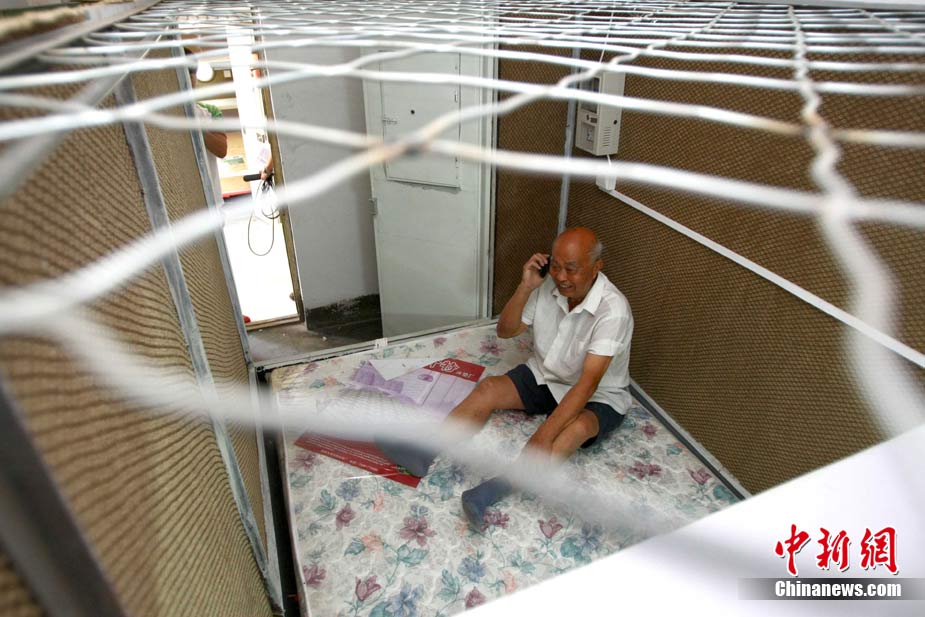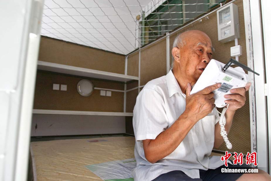 8月16日,在北京石景山區(qū)麻峪東街,78歲老人黃日新所建的第三代膠囊公寓開張。第三代膠囊公寓設(shè)有單人間和夫妻間(圖),大小為長2.4米、寬1.2米(夫妻房寬1.6米)、高2米。每個膠囊房間采用席夢思床墊,在電腦桌上方安置床頭柜,安裝獨立電表,并增設(shè)廚房和廁所。中新社發(fā) 富田 攝