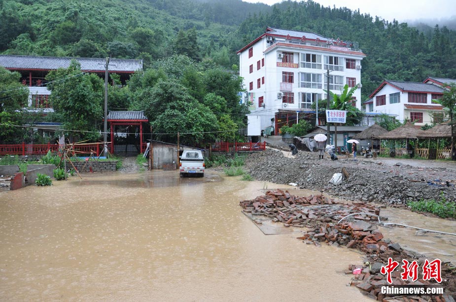 8月18日16時,四川省青川縣城前往蒿溪鄉(xiāng)的道路由于暴雨造成塌方,導致道路中斷,車輛通行受阻。現(xiàn)場由于再次出現(xiàn)大量山體垮塌,部分路段搶險工作被迫停止。中新社發(fā) 劉忠俊 攝