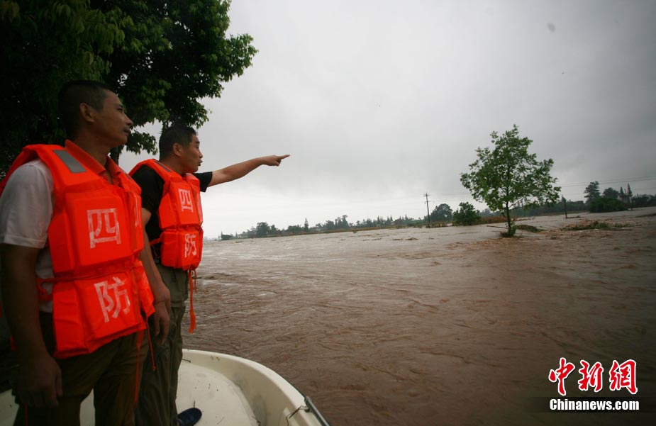 8月19日,四川眉山部分地區(qū)遭遇暴雨襲擊,丹棱縣、東坡區(qū)部分鄉(xiāng)鎮(zhèn)民房被淹,群眾被困。當?shù)卣杆賳討?yīng)急預(yù)案,由武警、消防、民兵預(yù)備役部隊等400余人組成的抗洪搶險救援隊第一時間趕赴現(xiàn)場,緊急疏散、轉(zhuǎn)移被困群眾500余人。圖為6名被困民眾被成功轉(zhuǎn)移。中新社發(fā) 劉忠俊 攝