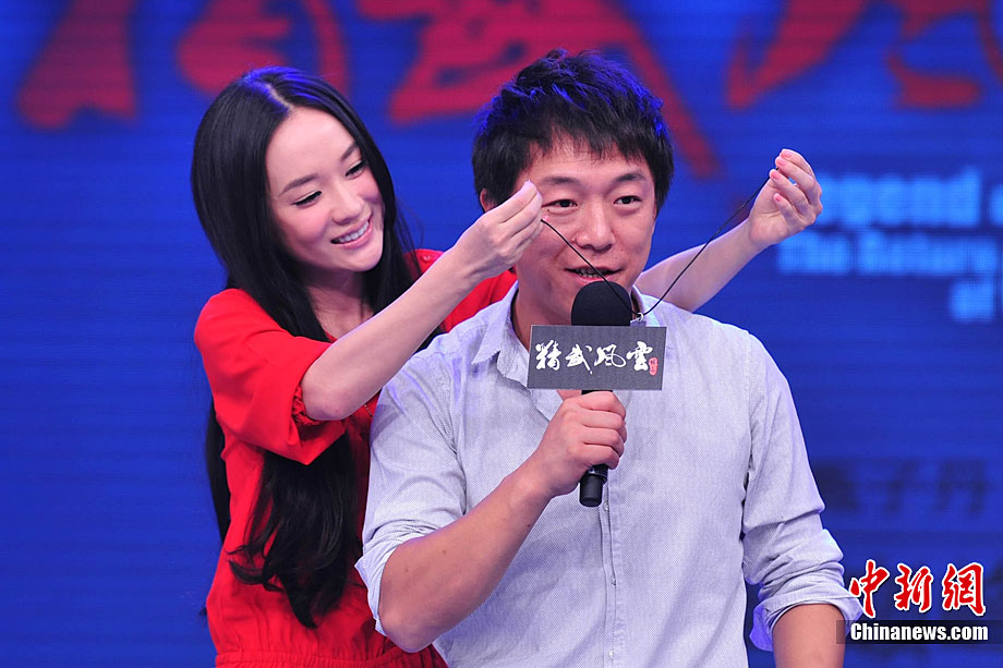 8月26日,影片《精武風(fēng)云·陳真》在北京舉行終極版預(yù)告片發(fā)布會(huì),演員黃渤、霍思燕、木幡龍紛紛亮相。圖為霍思燕在現(xiàn)場激情擁吻黃渤,讓“影帝”驚喜不已,現(xiàn)場一片驚呼。中新社記者 李學(xué)仕 攝