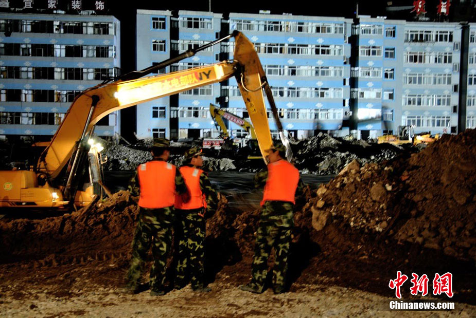 為盡快消除舟曲特大泥石流形成的白龍江堰塞體,疏通河道,早日解除舟曲縣城水患,武警水電部隊(duì)官兵日夜艱苦奮戰(zhàn)在在1.5公里的白龍江兩岸搶險(xiǎn)一線, 24小時(shí)晝夜挖掘和清理河道中的碎石淤泥,到目前水位下降已3米多 縣城淹沒房屋逐退水面。白龍江堰塞體搶險(xiǎn)工作已全面進(jìn)入沖刺階段,圖為8月26日晚11時(shí)左右武警水電部隊(duì)官兵夜戰(zhàn)白龍江的施工現(xiàn)場。中新社記者 侯志紅 攝