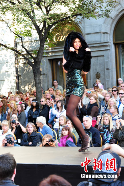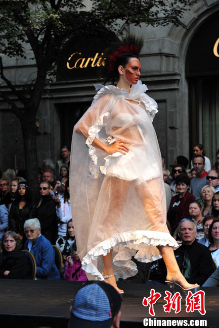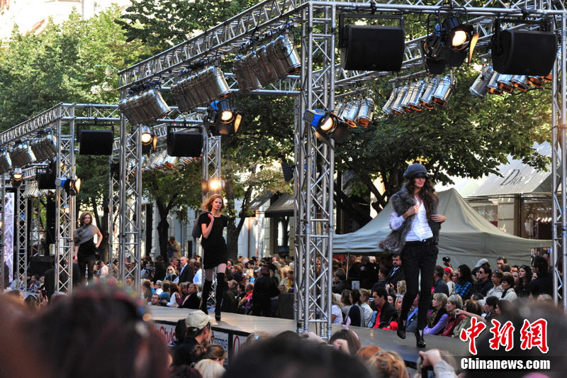 捷克布拉格繁華街區(qū)上演街頭時裝秀