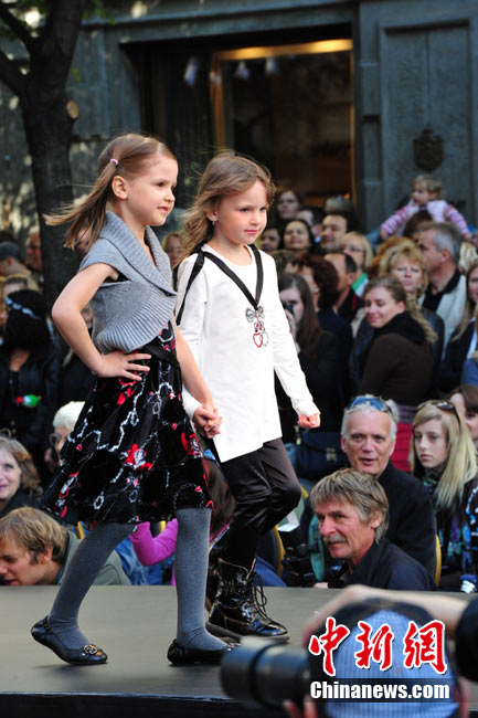捷克首都布拉格4日和5日接連兩天在市中心最繁華的商業(yè)街巴黎大街封閉車輛交通,在街道中間搭起長臺,向公眾表演時裝秀。其中一組兒童秀引起觀眾轟動。黃頻 攝