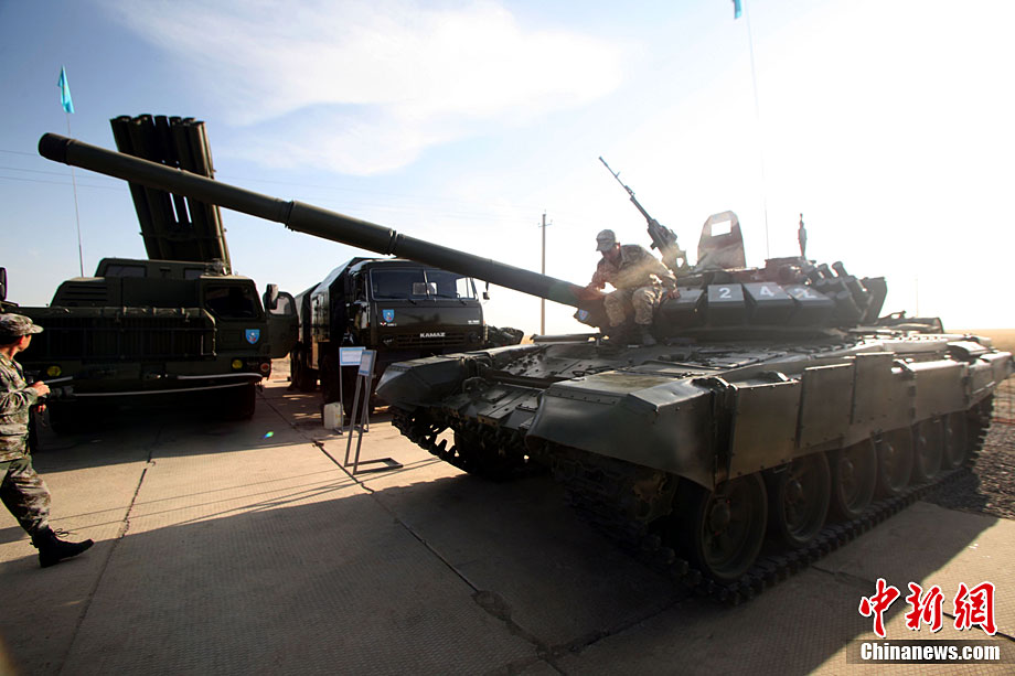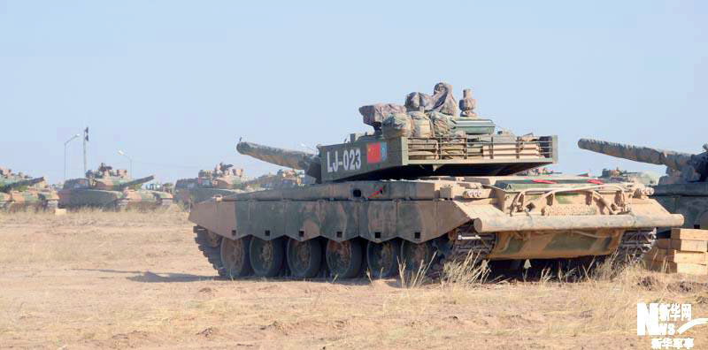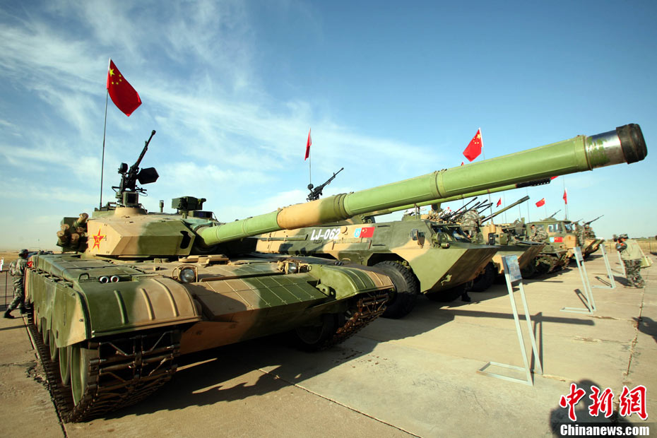 參加“和平使命-2010”上合組織聯(lián)合反恐軍事演習(xí)的中方參演裝備停放在哈薩克斯坦馬特布拉克訓(xùn)練場(chǎng)野戰(zhàn)兵營(yíng)。圖為99式坦克。孫彥新 攝 圖片來(lái)源:新華網(wǎng)